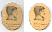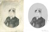 Marie Thérèse Pitay (N° sosa 35) Née le 21 novembre 1769 à Tours Mariée à François Bienvenu Décédée le 23 novembre 1853 à Tours Fille de François (ou Simon) Pitay et de Marie Geneviève Françoise Thénon. Ce portrait porte la même signature que celui de François Bienvenu ci-dessus, et serait donc de Henri-Joseph Hesse. |