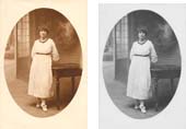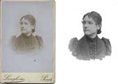 Alexandine Angélique Baudran (N° sosa 9) Née le 2 août 1860 à Paris Décédée le 15 avril 1915 à Alger Fille d'Etienne Baudran et de Marie Vidary Médaillée de l'Ecole Normale de Lille en 1882 Institutrice s'installe en Algérie où elle épouse Marie Armand Daniel Bienvenu le 29 Janvier 1887 à Oran (Acte) 2 Fils : Henri François Edouard en 1888 et François Louis Marcel en 1897 La photo est légendée "avec son fils François" : François Louis Marcel |